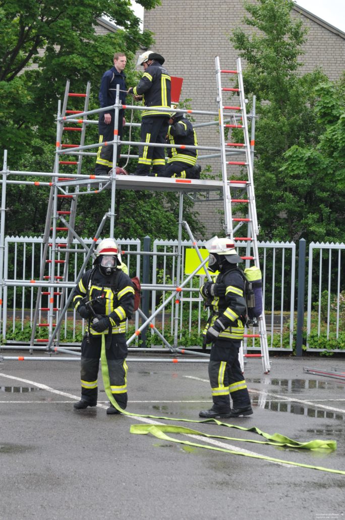 Mit jeder Stufe steigt der Schwierigkeitsgrad. Für das Leistungsabzeichen in Gold ist zunächst eine schriftliche Prüfung am frühen Morgen. Die praktischen Fertigkeiten sind anschließend bei einem Löschangriff und einer Hilfeleistungsübung unter Beweis zu stellen.
